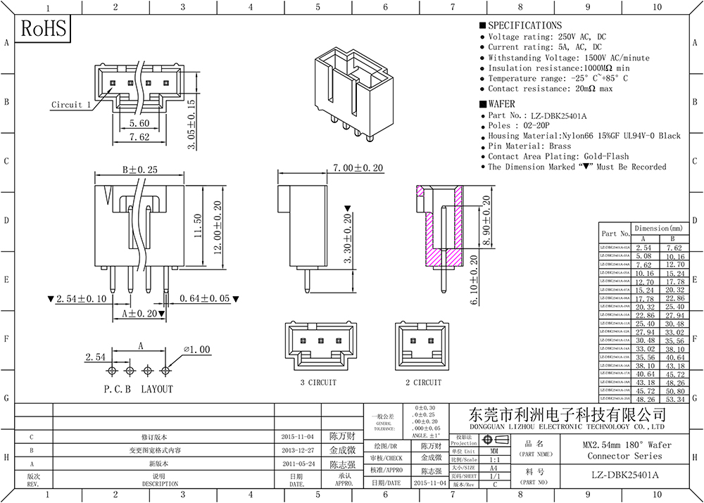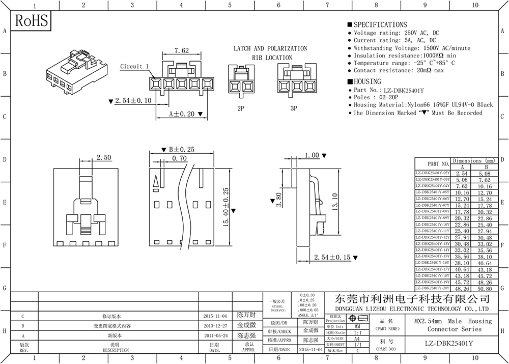 Contact resistance: 20mΩ max