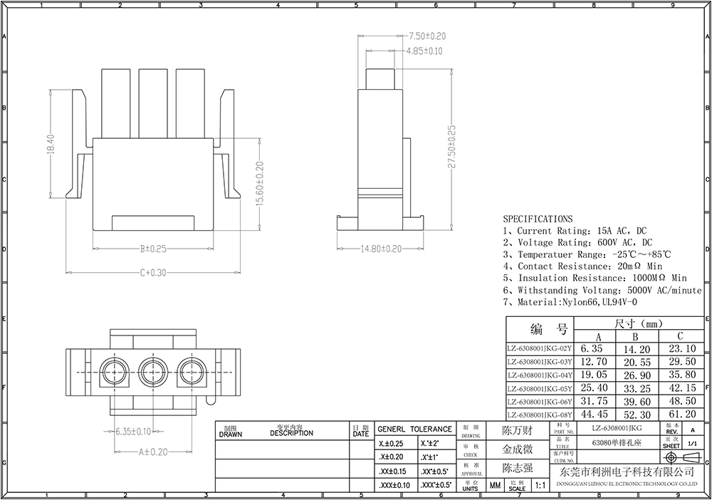 63080 Connector 6.35mm pitch series