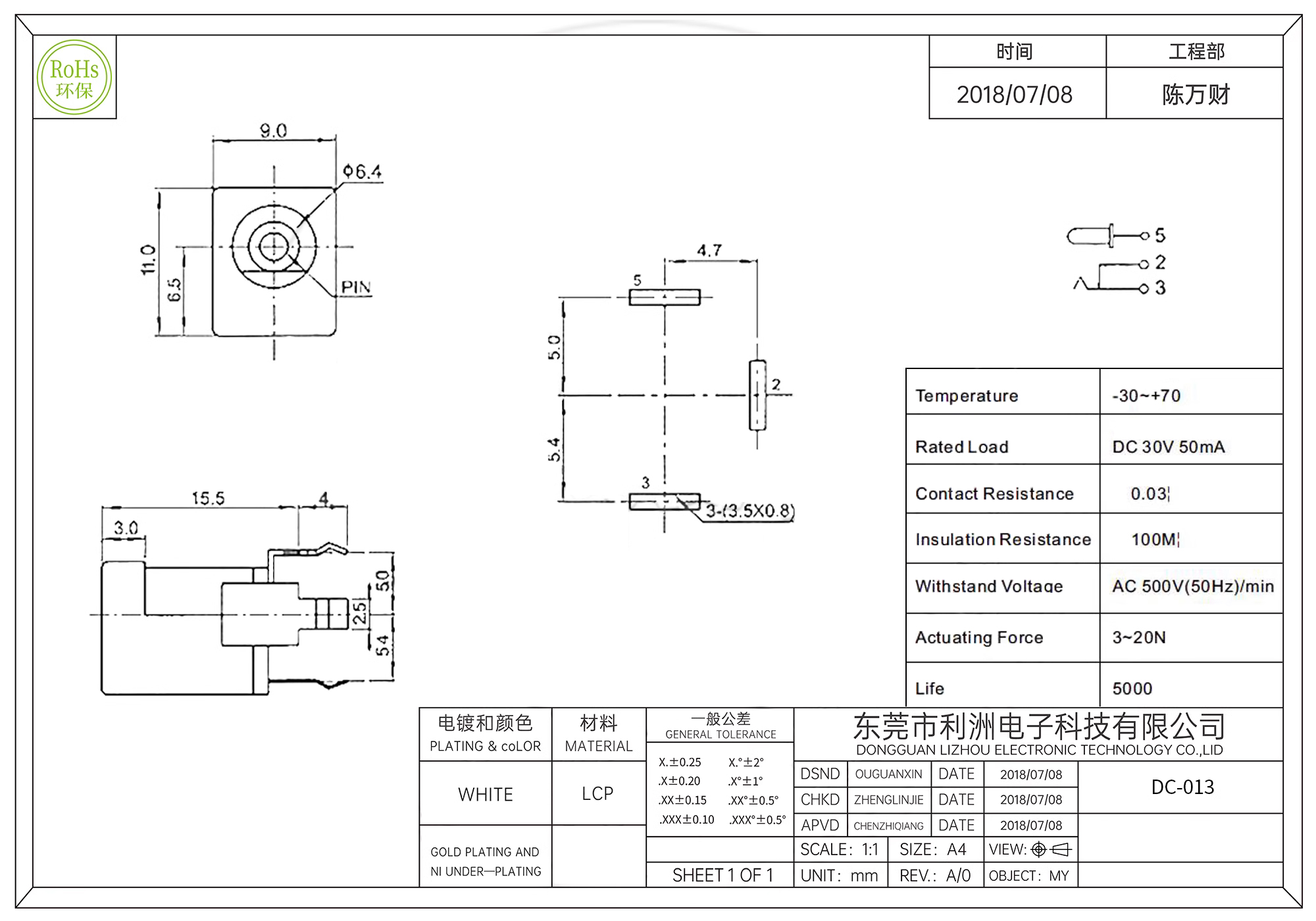 rated load: DC 30V 50mA