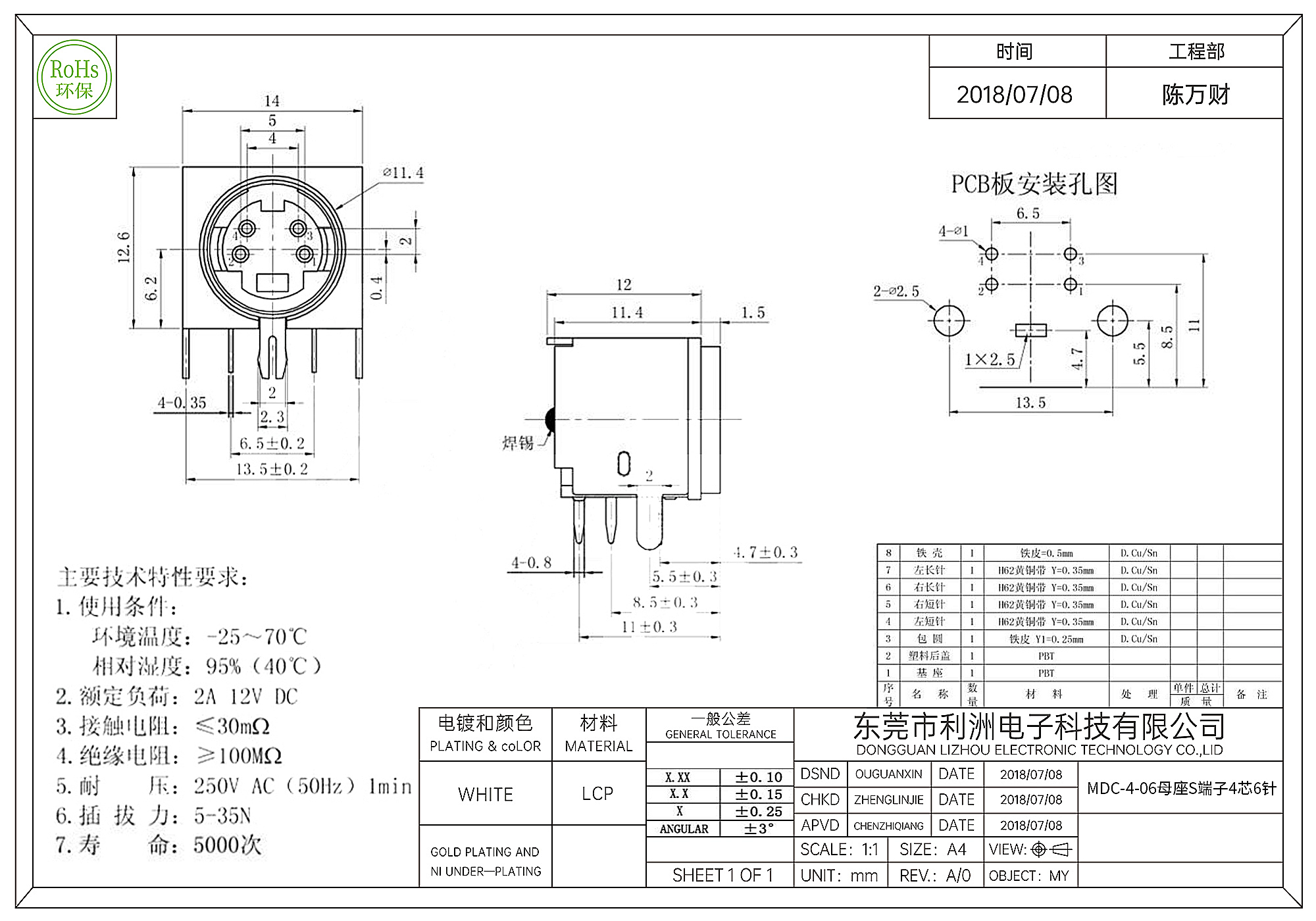 MDC-4-06母座S端子4芯6针