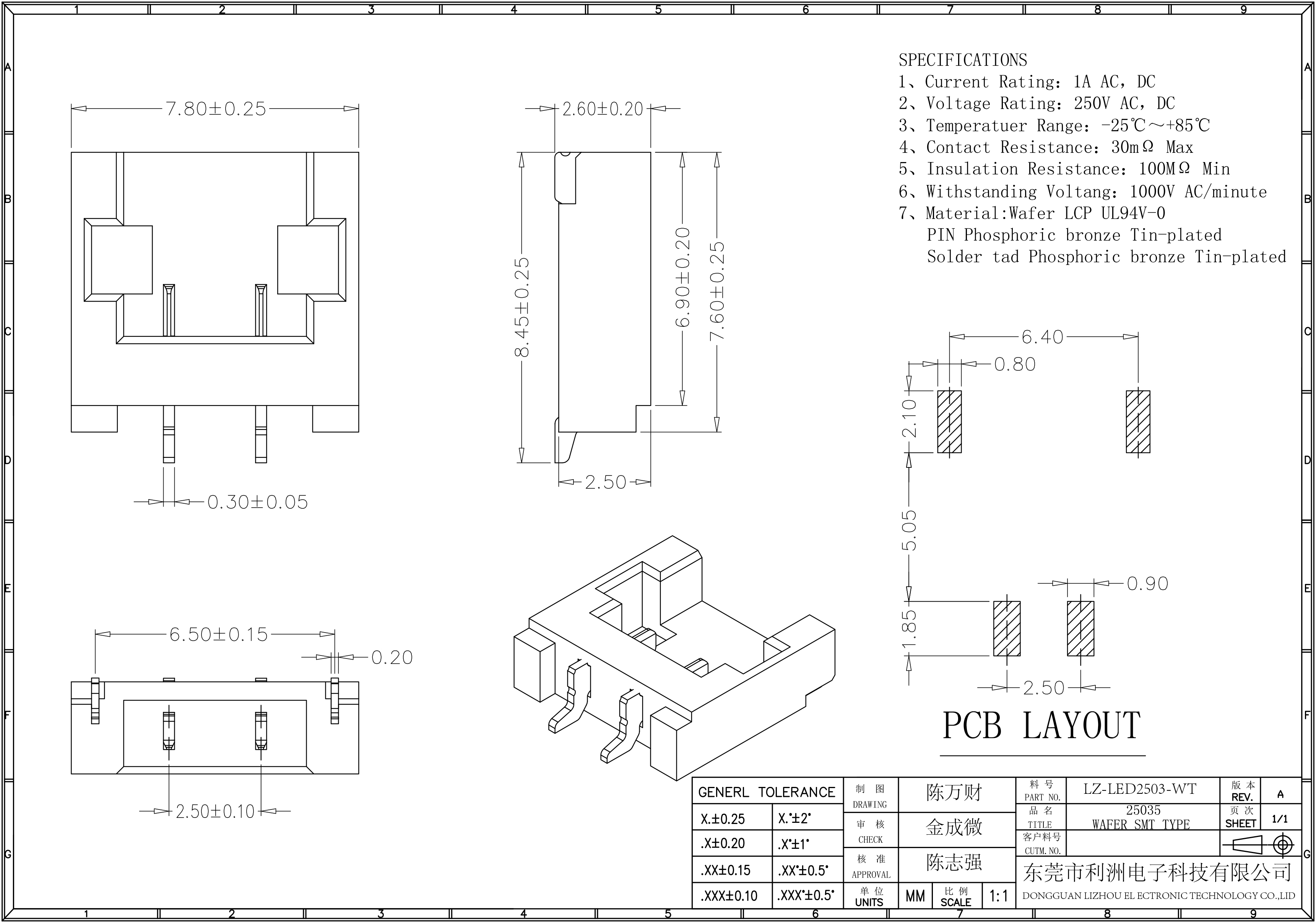 Material: Wafer LCP UL94V-0