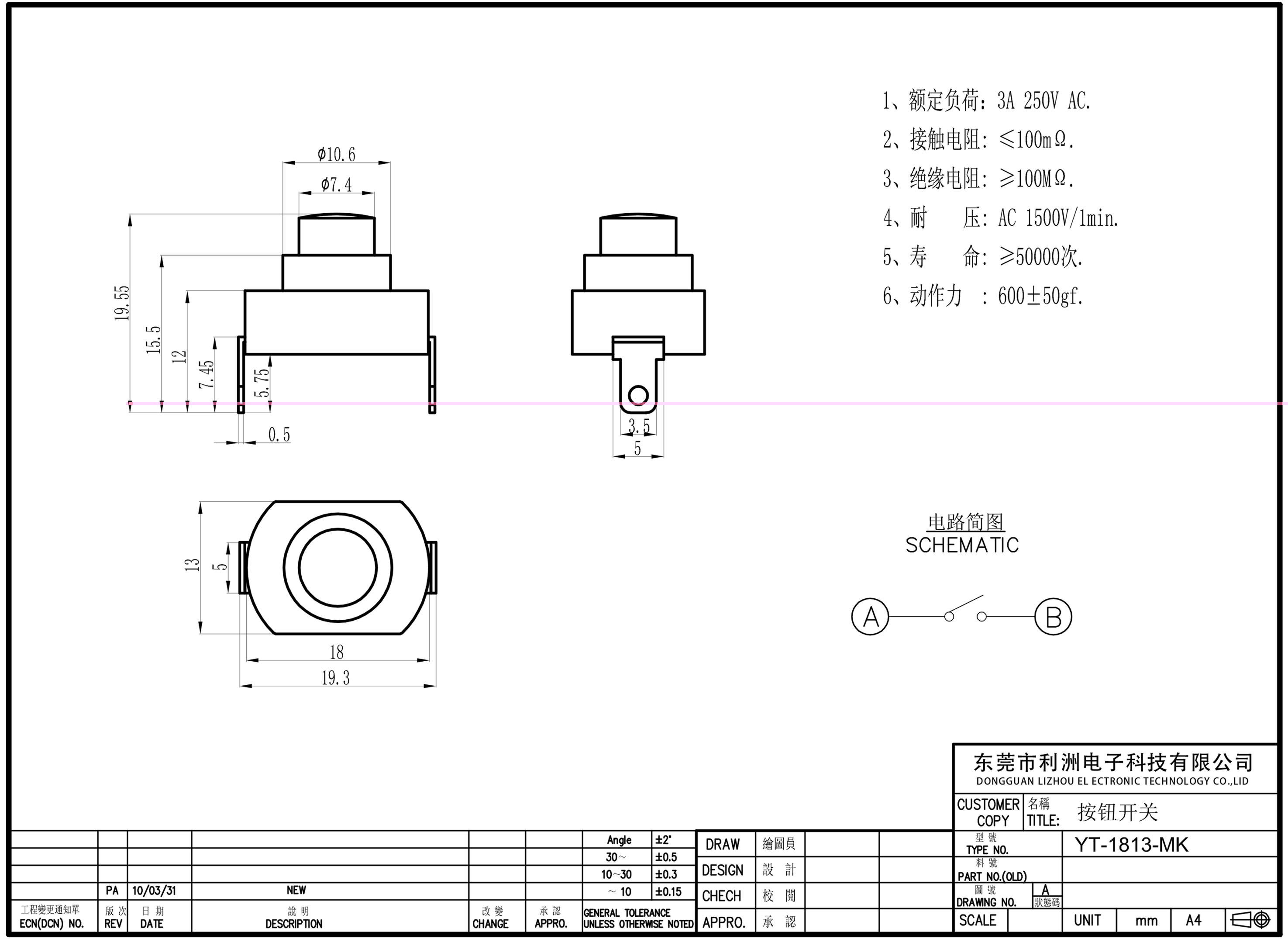 Switch strength: 600±50gf