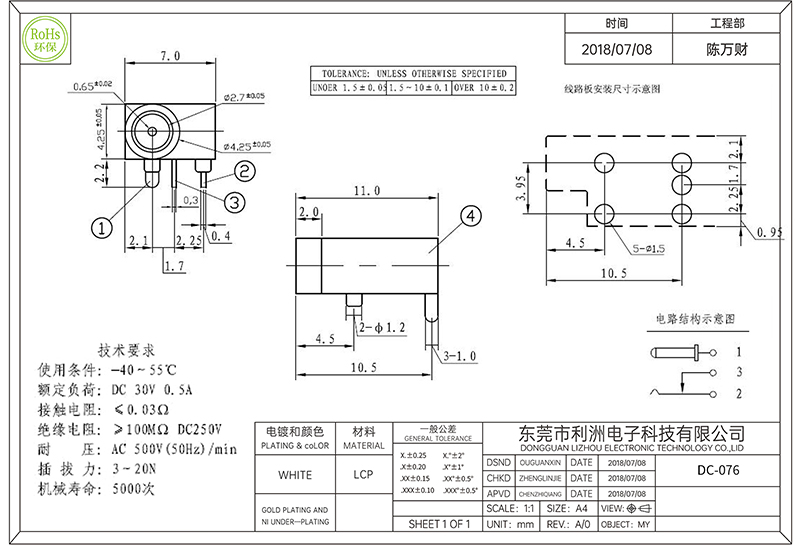 Contact resistance: ≤0.03mΩ