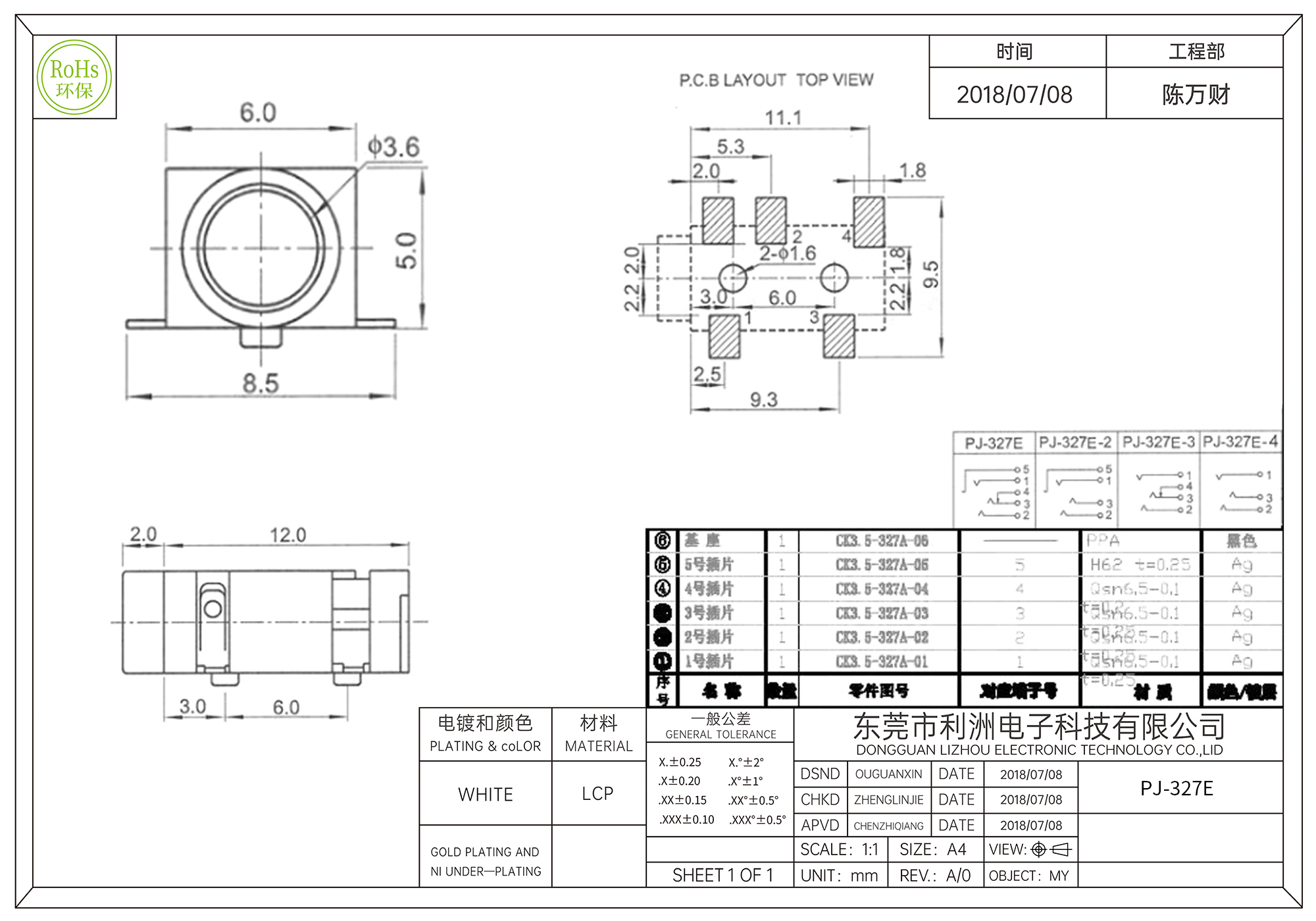 PJ-327E耳机插座3.5mm五脚贴片