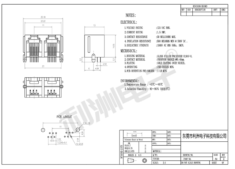 Durrability: 750 Mating Cycles MIN