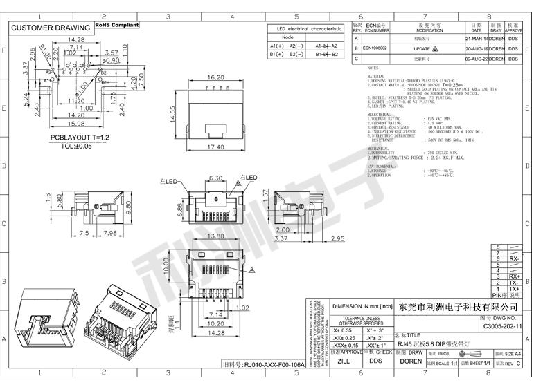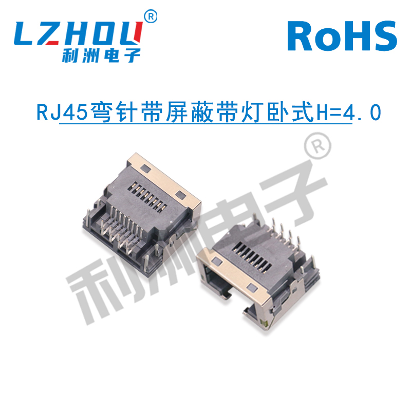 RJ45弯针带屏蔽带灯卧式H=4.0