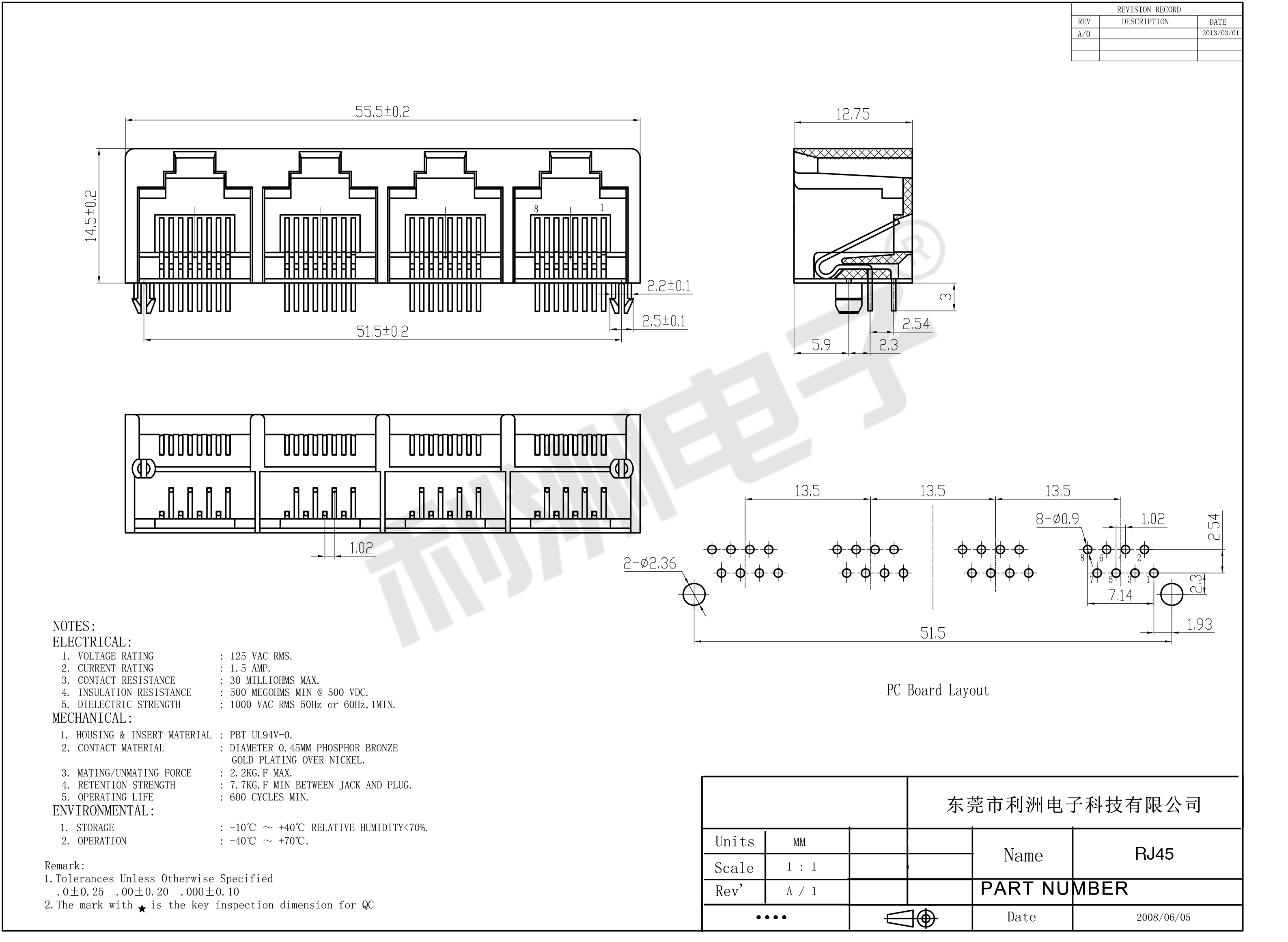 Durrability: 750 Mating Cycles MIN