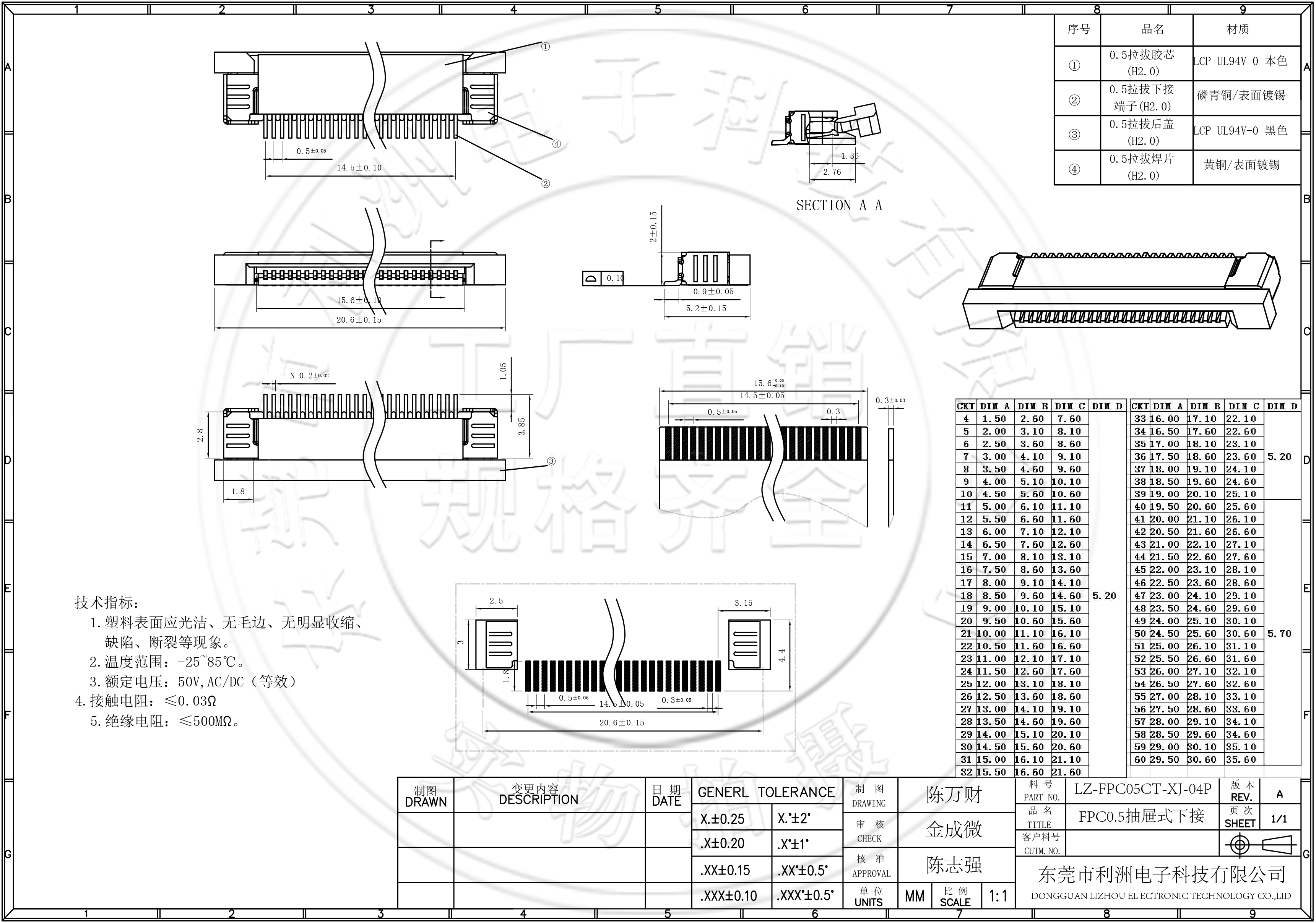 FPC0.5mm间距抽屉式上接 下接SMT