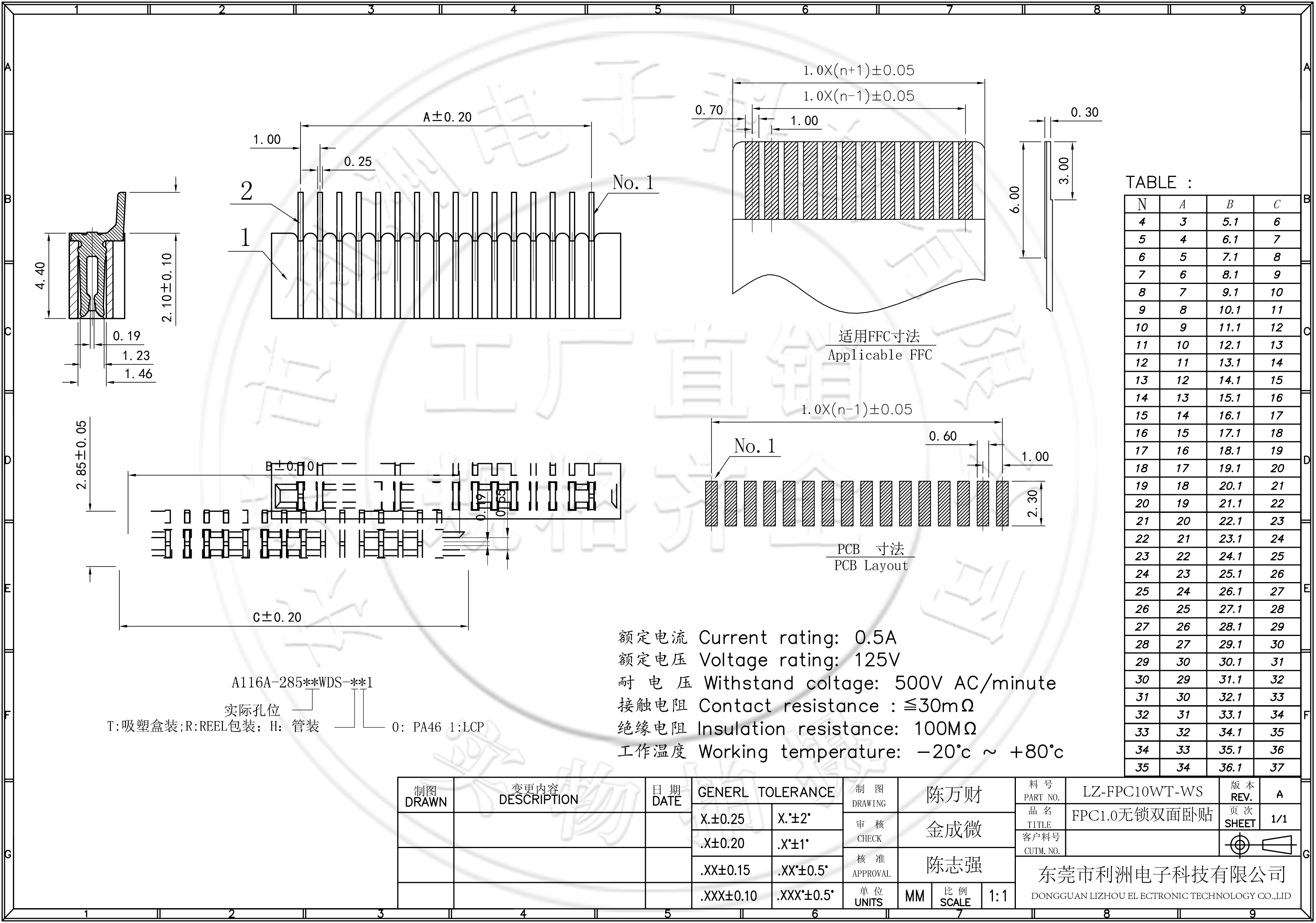 • FPC1.0mm间距双面接无锁贴片