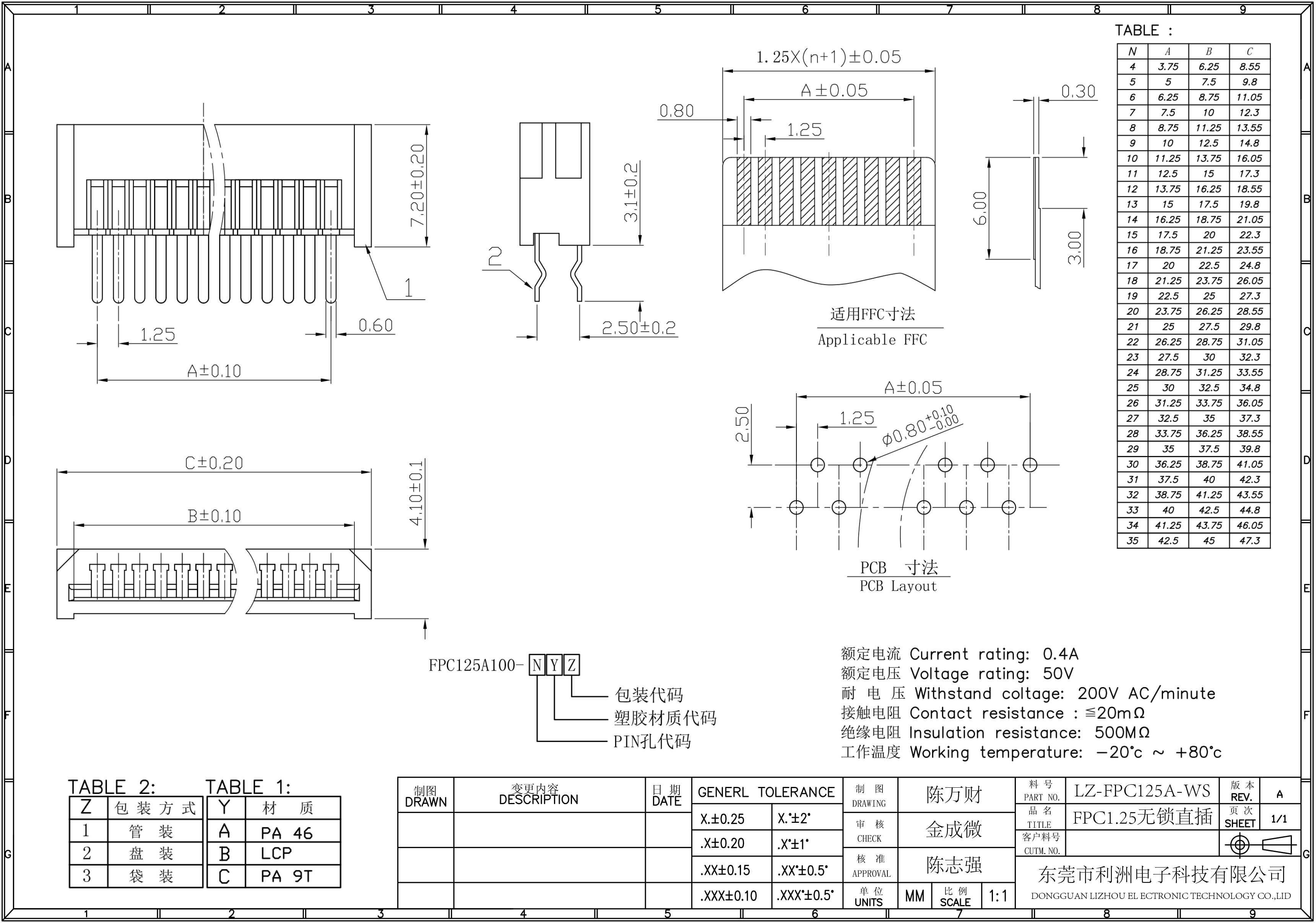 FPC1.25mm间距错位直插