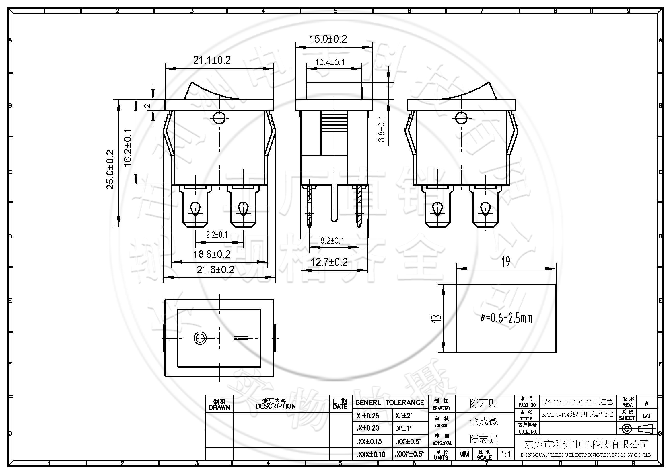 KCD1-104船型开关4脚2档