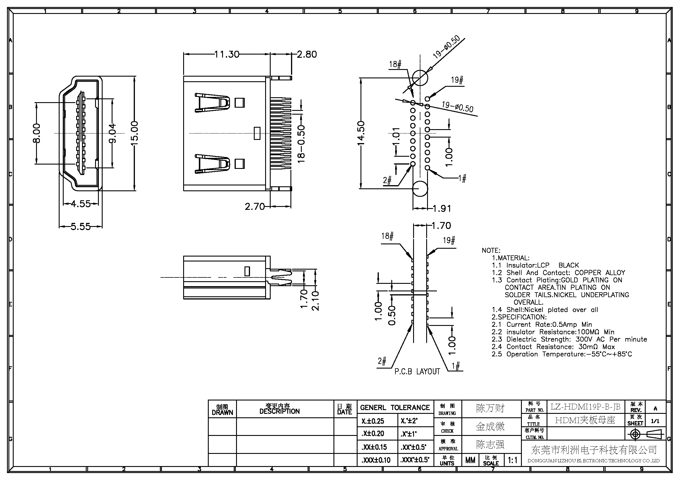• HDMI-19P母座A型1.6夹板式