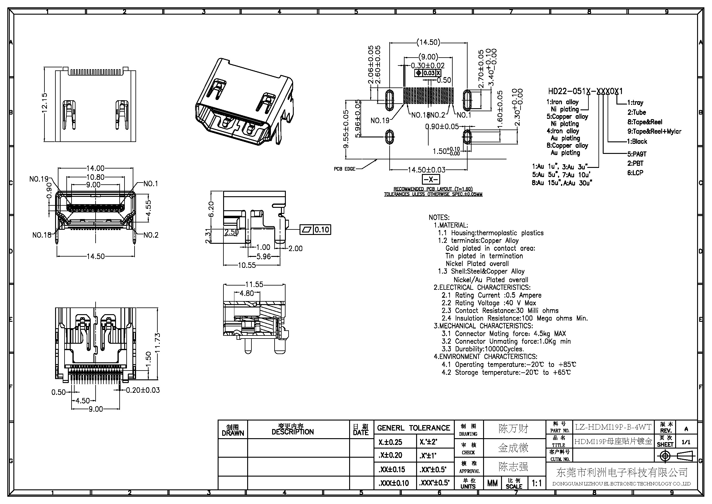 Connector Unmating force: 1.0Kg min