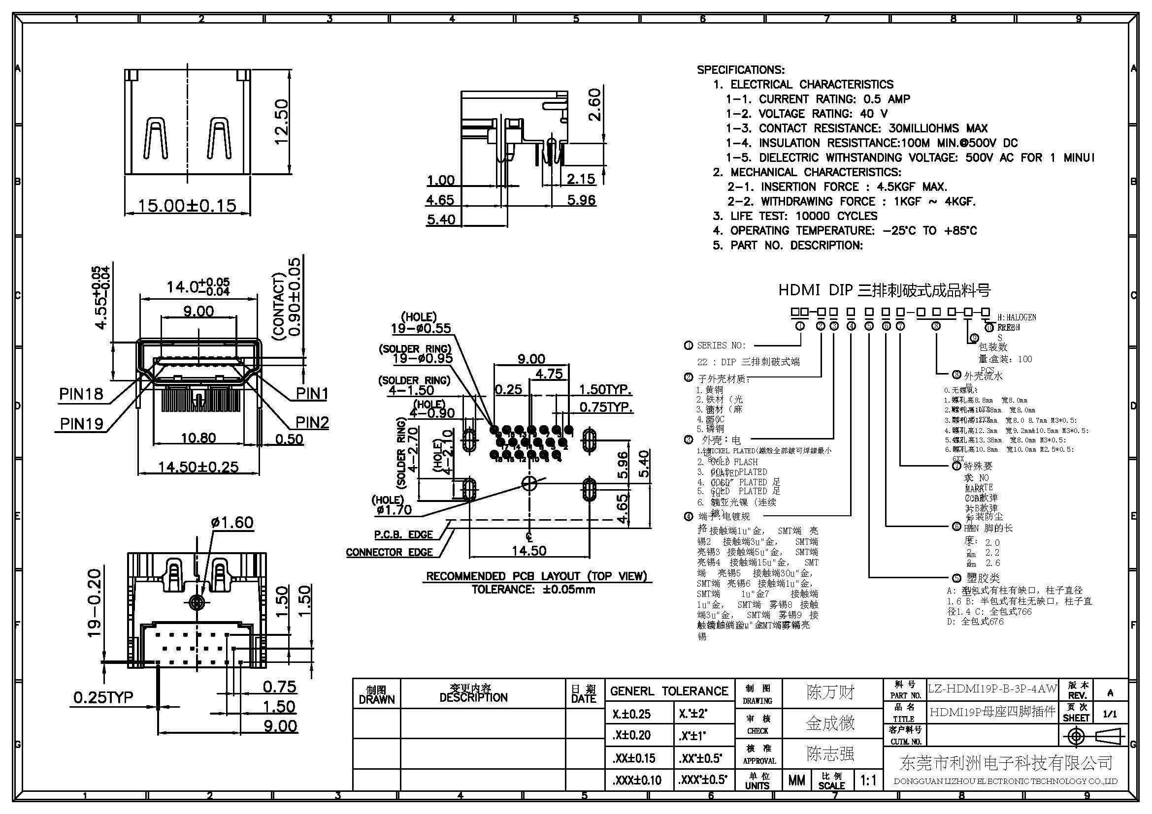 Dielectric Withstanding Voltage: 500V AC FOR 1minui