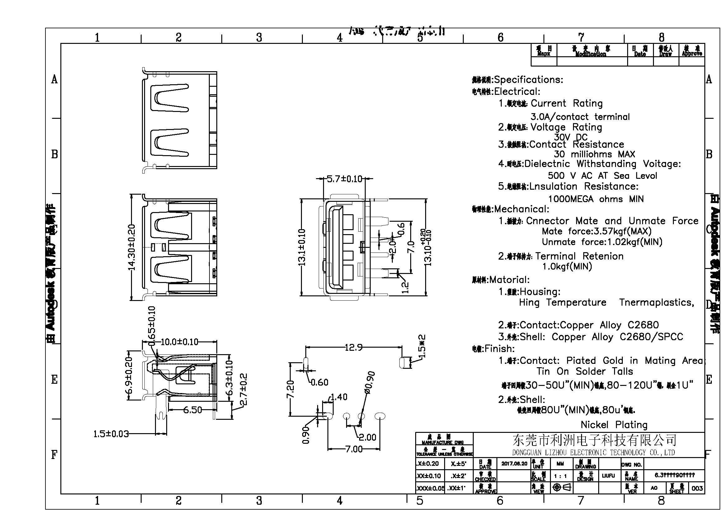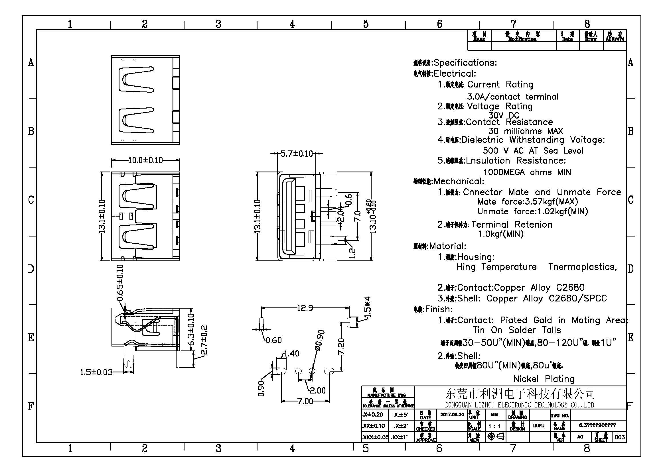 Cnnector Mate and Unmate Force: Mate force:3.57kgf(MAX) Unmate force:1.02kgf(MIN)