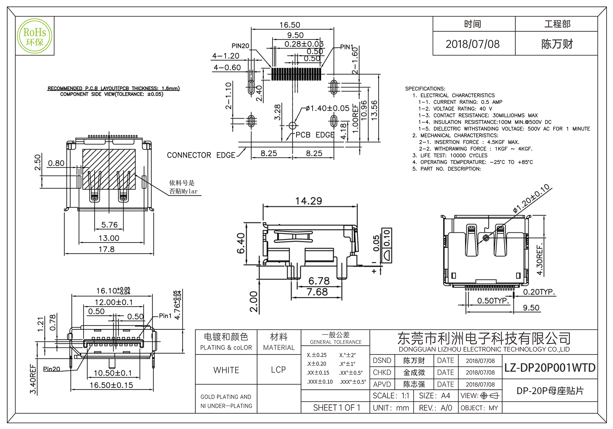 Contact resistance: 30milliohms MAX