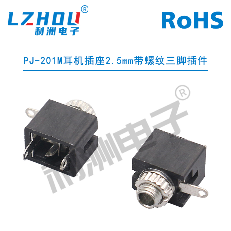 PJ-201M耳机插座2.5mm带螺纹三脚插件