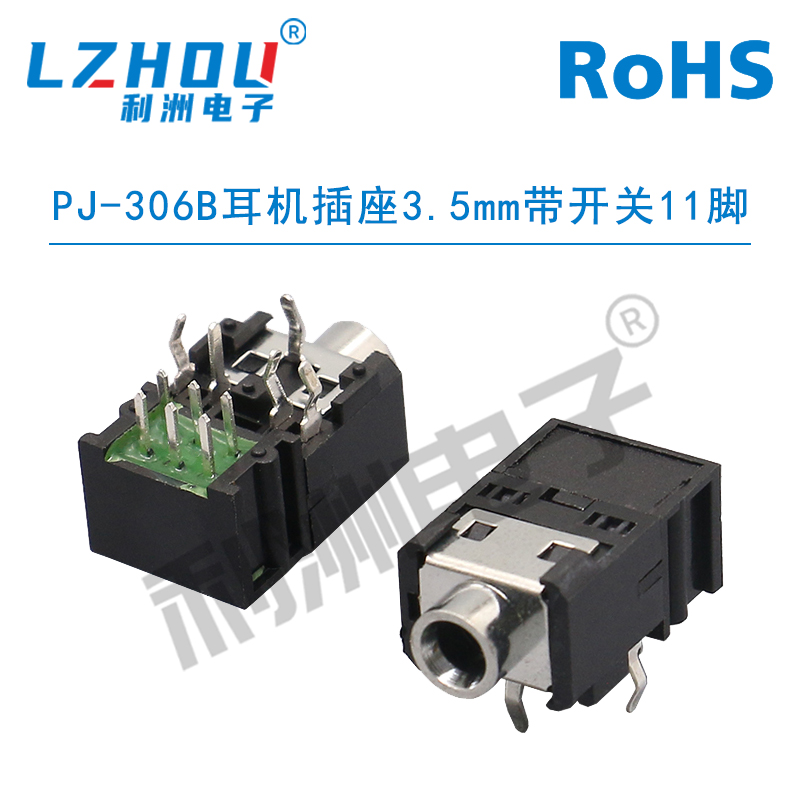 PJ-306B耳机插座3.5mm带开关11脚