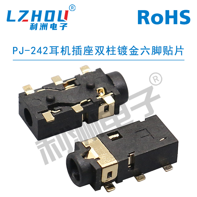 PJ-242耳机插座双柱镀金六脚贴片