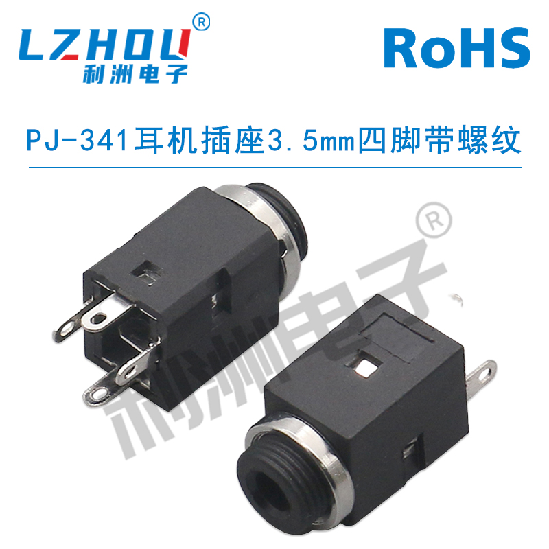 PJ-341耳机插座3.5mm四脚带螺纹