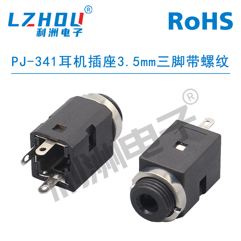 PJ-341耳机插座3.5mm三脚带螺纹