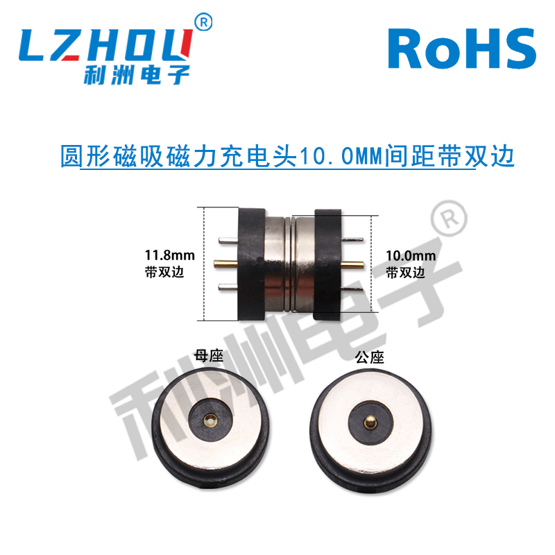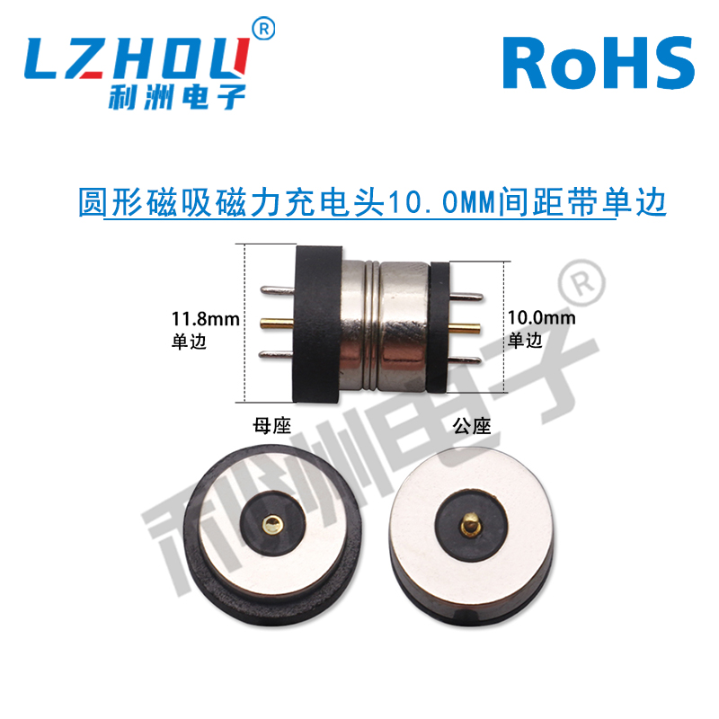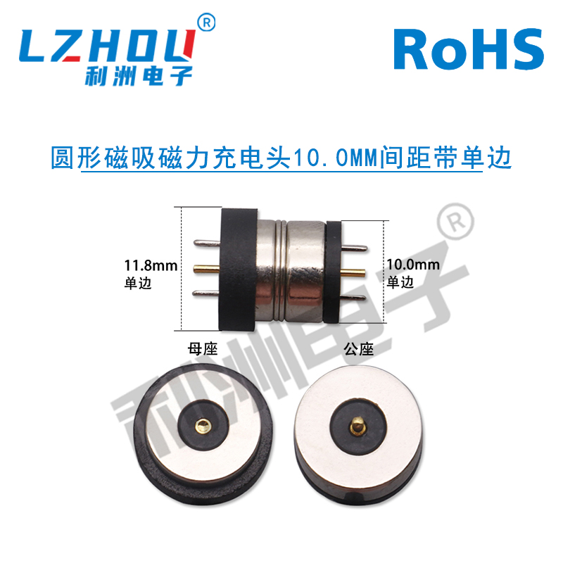 圆形磁吸磁力充电头10.0mm间距带单边