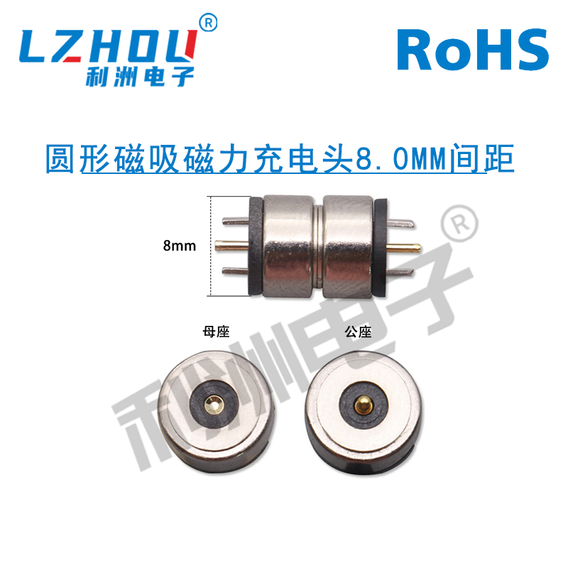 圆形磁吸磁力充电头8.0mm间距