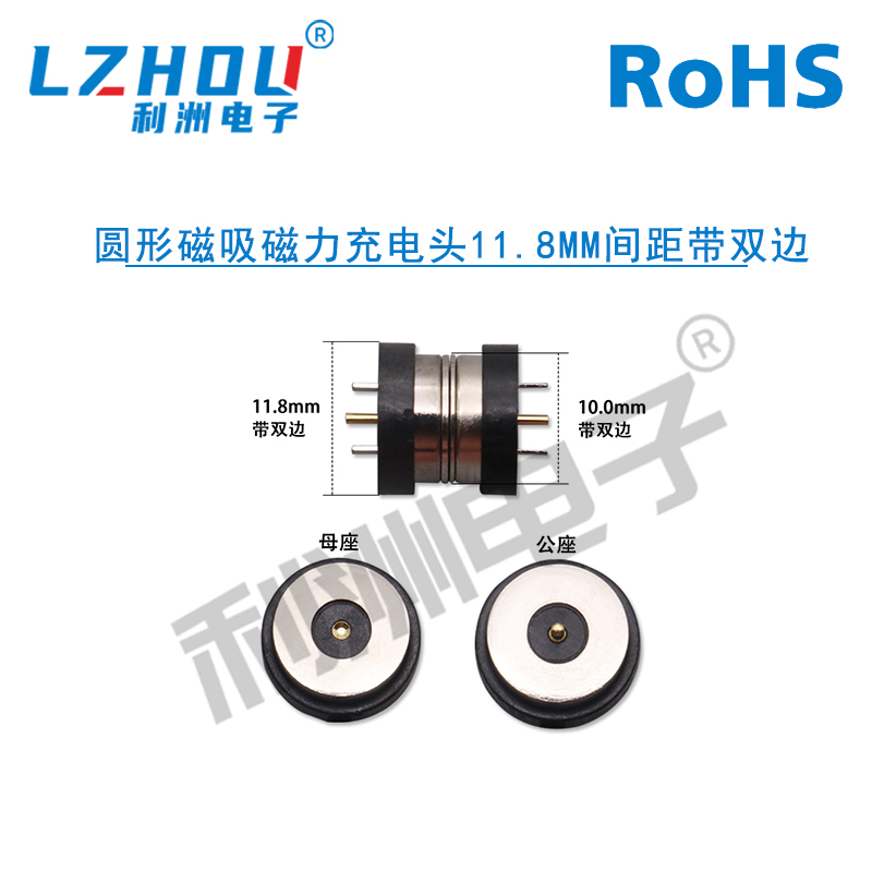 圆形磁吸磁力充电头11.8mm间距带双边